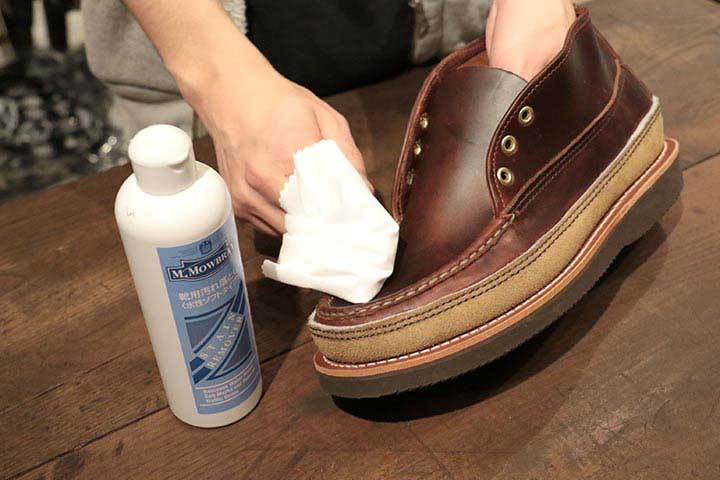 古い靴クリームなどもしっかりと落としておきましょう。(※ クリーナーは強い力でこする必要はありません)