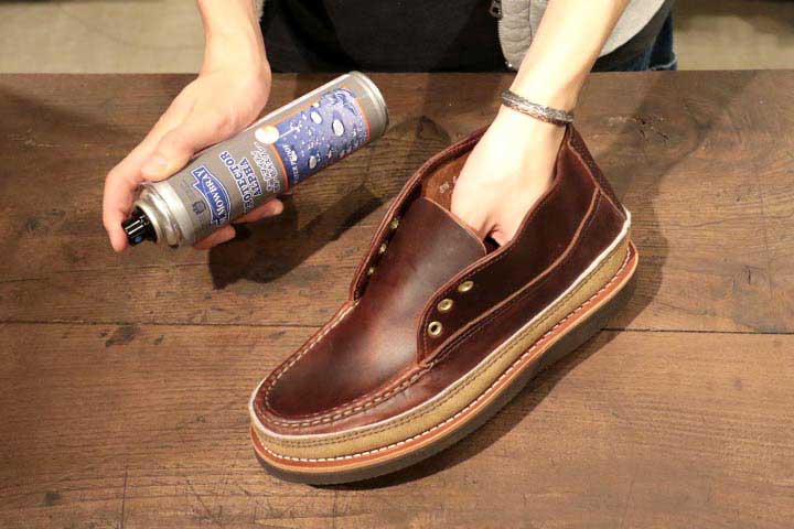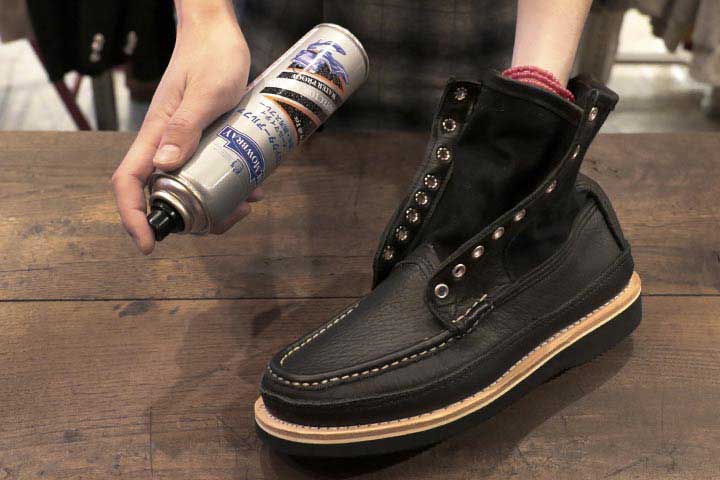 最後に靴用もしくはレザー用の「防水スプレー」をブーツ全体にスプレーします。